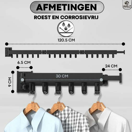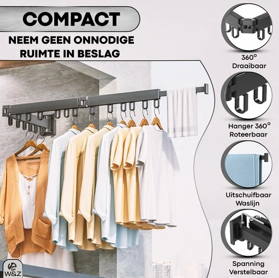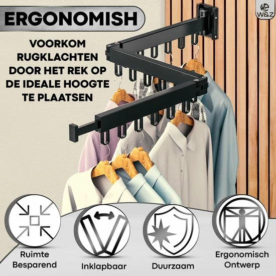 Heb jij beperkte ruimte in de waskamer/ woonruimte? Dan is de W&Z droogrek de ultieme oplossing voor jou! Met dit aan de muur gemonteerde droogrek kunt u uw ruimte volledig benutten, uitvouwen wanneer u het gebruikt. Tegen de muur vouwen wanneer u het niet gebruikt. Het neemt helemaal geen ruimte in beslag.