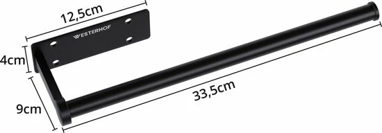 De Keukenrolhouder van Westerhof zorgt voor een opgeruimd en schoon aanrechtblad. De rollenhouder is voorzien van een strak aluminium design en de diepzwarte kleur staat perfect in tal van keukendesigns. De keukenrolhouder is zelfklevend, waardoor je deze heel eenvoudig aan de muur bevestigt. Zo wordt boren in de muur dus overbodig. De keukenrolhouder is geschikt voor rollen tot 260 mm. Dankzij het hangende design zijn de rollen keukenpapier makkelijk te vervangen. Zo heb je nooit meer last van rondslingerende rollen op het aanrecht.
