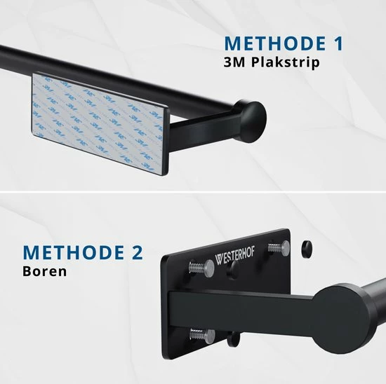 Heb je twee linkerhanden, maar wil je wel graag een keukenrolhouder aan de muur bevestigd hebben? Dan is deze houder perfect. Je kunt de rollenhouder namelijk eenvoudig met de sterke 3M plakstrip aan de muur bevestigen. De zelfklevende strip van de keukenrolhouder is enorm sterk en heeft een draagkracht tot wel 5 kg. Zo hoef je je dus nooit druk te maken om vallende items. Wil je er toch zeker zijn dat de houder helemaal niet van de muur valt, ook wanneer deze een hoger gewicht moet dragen? Dan kun je de meegeleverde schroefset gebruiken om de keukenrolhouder hangend aan de muur te bevestigen.