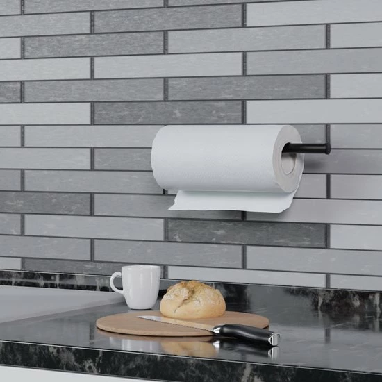 Hoe je keuken er ook uitziet, deze keukenrolhouder is gegarandeerd een mooie toevoeging. De houder is gemaakt van aluminium, waardoor hij slechts 0,05 kg weegt. Het strakke zwarte design zorgt ervoor dat de keukenrolhouder een fijn accessoire is in iedere keuken. Hang hem in het zicht aan de muur of bevestig de houder aan de onderkant van een keukenkastje om deze onopvallend en functioneel te houden.