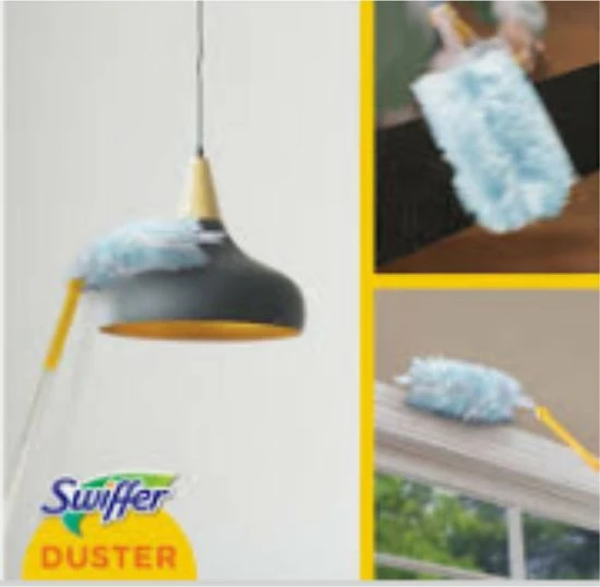 De Swiffer Dusters zijn het middel om stof, haar en allergenen van huisstofmijten, katten en honden op oppervlakken te vangen en vast te houden dankzij de duizenden licht gecoate pluizige vezels.