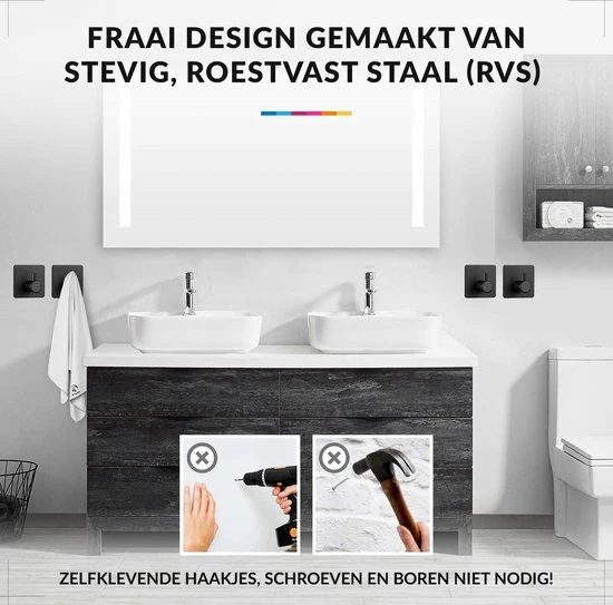 YONO’s zelfklevende haakjes zorgen in een oogwenk voor een georganiseerde en opgeruimde woning. Ze zijn gemaakt van stevig, roestvast staal (RVS) en hebben een luxe afwerking. Het strakke, minimalistische ontwerp zorgt voor een stijlvolle toets in de badkamer, keuken of op de gang. Dankzij de plakstrip kunnen de zelfklevende haakjes makkelijk worden bevestigd op gladde oppervlakken zoals een muur, glas, deur of tegels. De rechte haak op het vierkantje zorgt ervoor dat de hand- of theedoeken stevig blijven zitten.