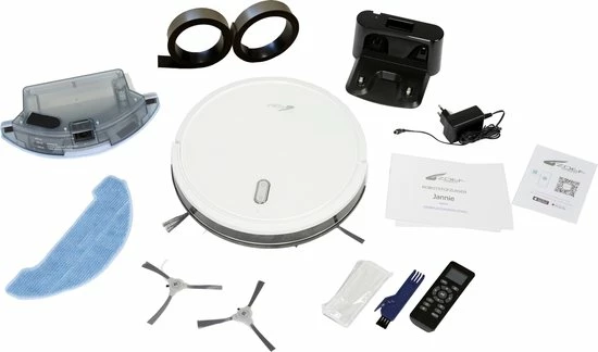 Robotstofzuiger Jannie beschikt over diverse borstels die er voor zorgen dat uw vloer goed schoon wordt. De speciale hoofdborstels zorgen voor minder klitten van haren rondom. Daarnaast heeft de stofzuiger speciale zij-borstels om zo alle hoeken van de kamer goed te kunnen schoonmaken. De stofzuiger beschikt over een HEPA-filter die de lucht filtert voor een aangename leefomgeving. Om zo lang mogelijk van robotstofzuiger Jannie te genieten raden wij aan om de HEPA-filters elke 2 maanden en de borstels ongeveer 1 keer per half jaar te vervangen. Het vuil dat de stofzuiger opzuigt wordt opgeslagen in een stofbak met een inhoud van 500 ml. Wanneer deze stofbak vol is kan deze eenvoudig geleegd worden in de vuilnisbak. Voor de dweilfunctie beschikt Jannie over een waterreservoir met een inhoud van 300 ml en wordt de robotstofzuiger geleverd met 2 dweildoeken. Deze zijn ook los verkrijgbaar. Het is ook mogelijk om alle losse accessoires die bij Jannie horen in een keer te vervangen om zo extra lang te kunnen genieten van het gemak van robotstofzuiger Jannie!